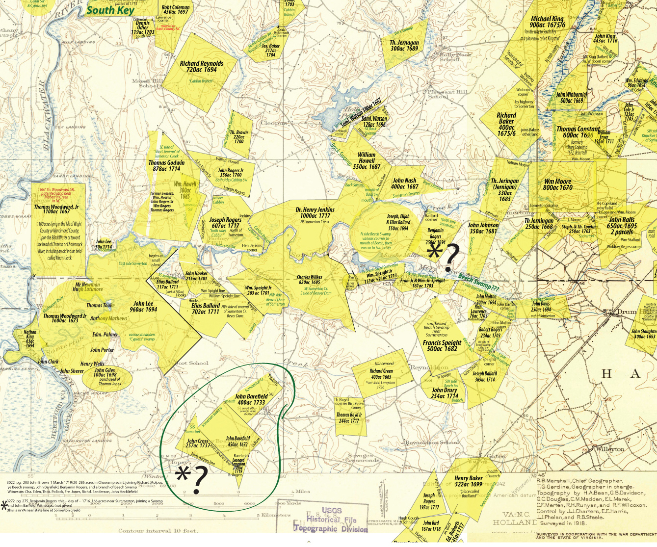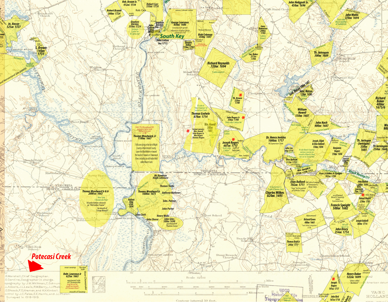 I think the Bennett’s Creek they are talking about is not where everyone thinks it is… I think it is at the mouth of Meherrin River… 1663: